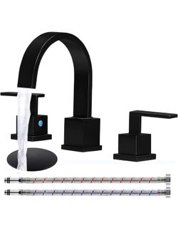 Matte Black Bathroom Faucet, Black Faucet Bathroom 3 Hole 8inch Widespread Waterfall 2 Handle Black Faucets Bathroom Sink Vanity Faucet with Pop Up Dr$35Ontario, CA
