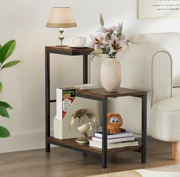 G-Shaped End Table - Small Side Table for Living Room, Bedside Table with Storage Shelf, Corner Tables for Small Spaces, Balcony, Couch, Bedroom, Rust$20Ontario, CA