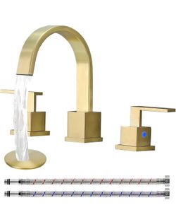 Brushed Gold Faucets Bathroom 3 Hole 8inch Widespread Waterfall 2 Handle Brass Faucets Bath Sink Vanity Faucet with Pop Up Drain and Supply Lines$35Ontario, CA