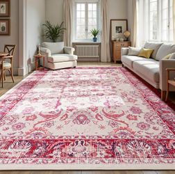 Zentavio 9x12 Washable Area Rugs, Vintage Non-Slip Floral Living Room Rug, Indoor Foldable Floor Thi$40Ontario, CA