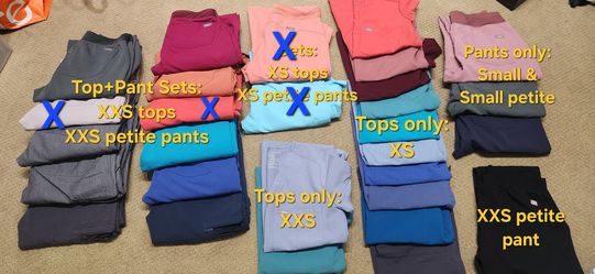 Figs Scrubs : Womens Assortment & Variety Of Colors Tops & Pants Sets (Sizes XXS/XS Petite)$20San Diego, CA