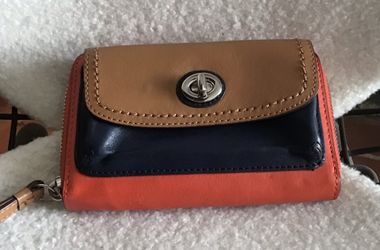 Authentic BRAND NEW WITH TAGS Coach turnlock Wristlet Wallet Coin Purse Navy, Coral & Tan Multi$50Los Angeles, CA