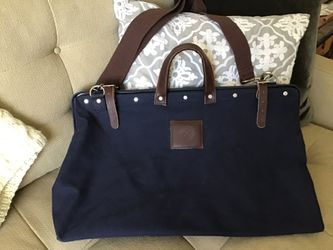 HUGE NAVY BLUE CANVAS & REAL LEATHER TRIM TRAVEL BAG SATCHEL CARRYON TOTE$50Los Angeles, CA