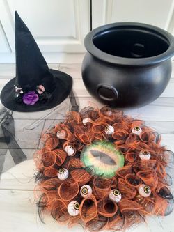 Halloween Cauldron, Witch's Hat And Wreath$10San Marcos, CA