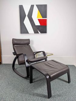 IKEA Poang Brown Leather Rocker Chair w/ Ottoman$195Tacoma, WA