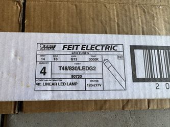 Feit 4ft LED Light Bulbs (QTY 4) T48/830/LEDG2$20Chula Vista, CA