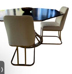 2 New Modern Contemporary Dining Chairs Beige Cloth Gold Frames $185Oakland Park, FL