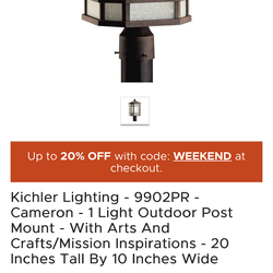 Light Outdoor Post Mount - With Arts And Crafts/Mission Inspirations - 20 Inches Tall By 10 Inches Wide$75Gainesville, GA