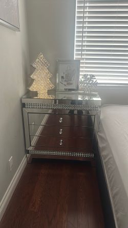 Mirrored Nightstand, Crystal End Table with 2-Drawers, Mirror Accent Silver Table, Bedroom Cabinet from Furniture$350Montebello, CA