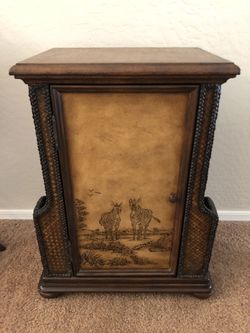 Chair Side Table Chest Brown Wood And Rattan African Motif$129Gilbert, AZ