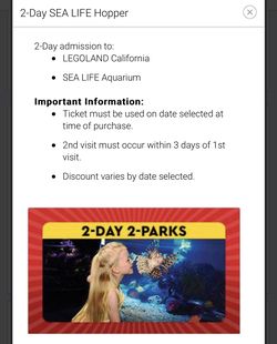 San Diego legoland 2 day pass$50Bellevue, WA