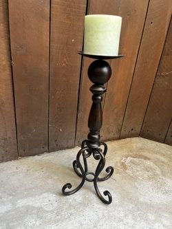 Beautiful Tabletop Or Floor Candleholder. Made of wrought iron & wood. 20-inch tall.$8Corona, CA