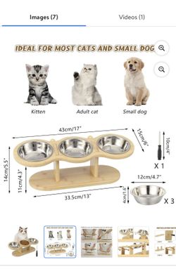 Qweryboo Wooden Elevated Cat Bowls, 15° Tilted Raised Pet Food Bowls, Adjustable Cat Dog Bowl Feeding Station with 3 Stainless Steel Bowls for Cats P$15Chula Vista, CA