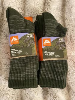 Ozark Trail Outdoor Equipment 2-3pair Men’s 6-12” Wool Blend Crew Socks GRN/BRN$20Oakfield, TN