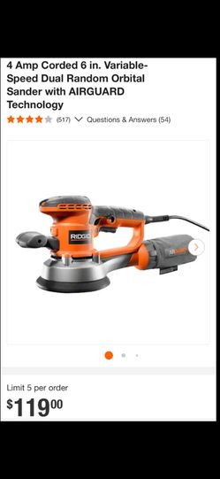 4 Amp Corded 6 in. Variable-Speed Dual Random Orbital Sander with AIRGUARD Technology$75Winchester, CA