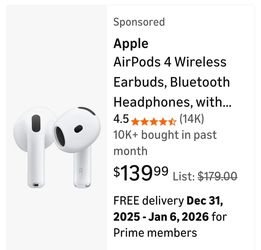 Apple AirPods 4 With Active Noise Cancellation.$110Hoffman Estates, IL