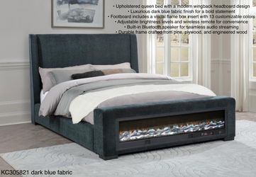 New Queen Bed Footboard Fireplace/usb/bluetooth Speakers Dark Blue Fabric$899Lehigh Acres, FL