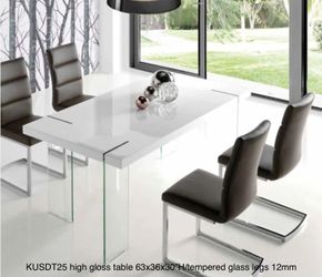 New White High Gloss Dining Table 4 Chairs 5pc Set Matching Coffee And Console Table Available $1Lehigh Acres, FL