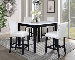 New 5pc Square White Faux Marble With 4 Counter Height Velvet Chairs $549Lehigh Acres, FL
