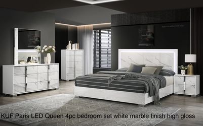 New LED Queen 4pc Bedroom Set White Marble Finish High Gloss/silver Handles And Legs $1,399Lehigh Acres, FL
