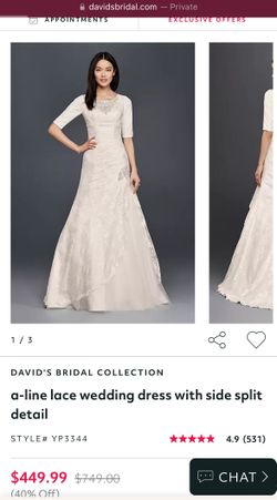 a-line lace wedding dress with side split detail $450Puyallup, WA