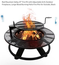 SoldRed Mountain Valley 47" Fire Pit with Adjustable Grill, Outdoor Fireplaces, Large Wood Burning Patio Fire Pits for Outside, Black$150La Verne, CA