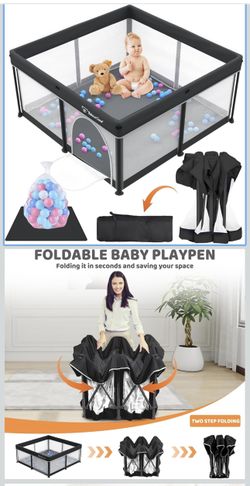 Foldable Baby Play Pen with Mat, 50''x71'' Playpen for Babies and Toddlers, Playpen for Baby with Gate, Breathable,Foldable Travel Play Pen with 50 Oc$60La Verne, CA
