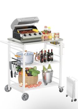 Folding Outdoor Grill Cart with Wheels, 3-Shelf Grill Table with 27x18 inch Stainless Steel Top, Rolling Pizza Oven Stand, Metal Portable Cart for BBQ$60La Verne, CA