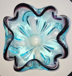 Italian Murano Sommerso Art Glass Sculpted Centerpiece Bowls Blue & Purple $130Orlando, FL