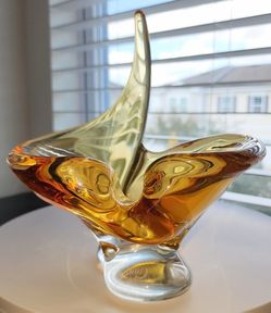 Chalet Canada Art Glass Sculpture Abstract Amber Bowl Dish$120Orlando, FL