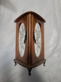 Vintage London Leather Triangle Footed Amoire Jewelry Box w/ Etched Glass$45Stockton, CA