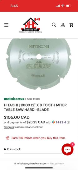 HITACHI | 18109 12" X 8 TOOTH MITER TABLE SAW HARDI-BLADE$50Brooklyn, NY