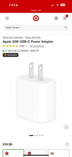 Apple 20W USB-C Power Adapter$15San Antonio, TX