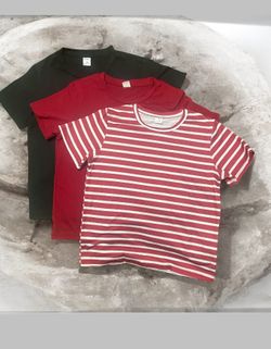 3-piece set of black, red, and red-striped short-sleeve T-shirts.$10Bakersfield, CA