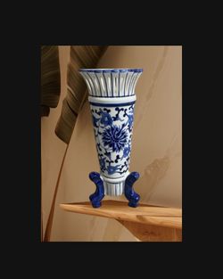 Beautiful Unique Big Footed Porcelain or Ceramic Cobalt Blue and White Vase Reticulated (cut out) Rim$25Bakersfield, CA