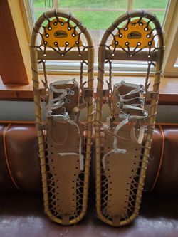 SHERPA SNOW CLAW VINTAGE SNOW SHOES GOLD ALUMINUM 34" x 9"