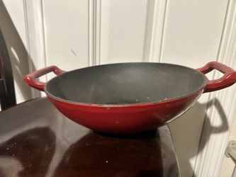 12” Enameled Flat Bottom Cast Iron Wok -Pre Seasoned Great Condition -Highend from William Sonoma$50Bellevue, WA