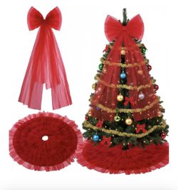 2 Pcs Red Christmas Tree Decoration Giant Red Bow Christmas Tree Topper 47 x 24 Inch Fabric Extra Large Bow Decor Artificial Xmas Skirt for Home Winte$10Mesa, AZ