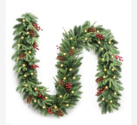 New Christmas Garland, 9ft Pre-Lit Christmas Garland with Lights, Battery Operated with Pine Cones & Red Berries, Artificial Christmas Greenery for Ma$10Mesa, AZ