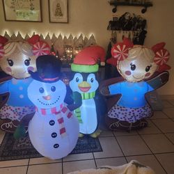 Christmas Inflatables Lot Of 4 Snowman Penguin Gingerbread$80Long Beach, CA