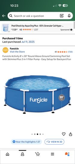 Funsicle 8ft x 30in Above Ground Pool – Great Condition$100Ocoee, FL