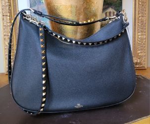 NWT VALENTINO GARAVANI LARGE BLACK LEATHER GOLD ROCKSTUD SHOULDER BAG HOBO BAG $1,575Crystal Lake, IL