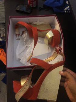 Wedge Heels (orange and gold)$7Bakersfield, CA