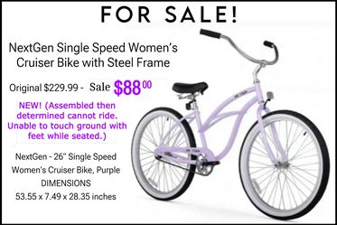 NextGen Single Speed Women’s Cruiser Bike with Steel Frame, Purple $88Youngstown, OH