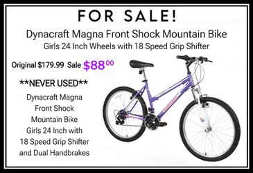 Dynacraft Magna Front Shock Mountain Bike Girls 24 Inch, 18 Speed, Purple -Great Christmas gift! $88Youngstown, OH