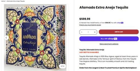 Tequila Afamado Extra Añejo square ceramic tequila bottle$75Lawrenceville, GA