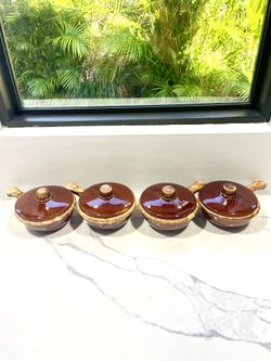 Hull Pottery Brown Drip handled soup bowls with lids(4)$60Boca Raton, FL