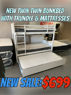 NEW TWIN TWIN BUNKBED WITH TRUNDLE & MATTRESSES$699Wilmington, CA