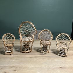 Set of 4 Small Vintage Boho Wicker Peacock Chair Plant Stand Doll Chair Home Decor$15Largo, FL