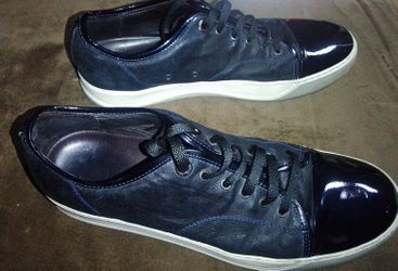 LANVIN DBB1 Navy Suede/Black Patent Leather Tip Sneakers, Sz 11 (MSRP $800)$75Ventura, CA